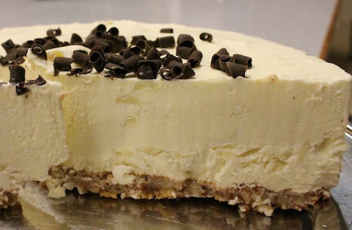 Denne isdessert har jeg lært at lave af min svigerinde – hun har lavet den til alle vores børns konfirmationer og den er bare god. En rigtig lækker vanilie-flødeis med masser af chokoladestykker i, og så på en skøn mandelbund.