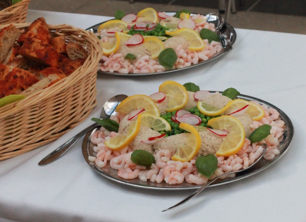 Jeg serverede med ærter i midten og rejer rundt om som på billedet.