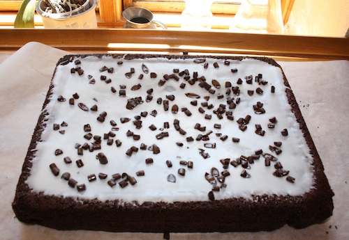 Tykmælk eller lignende surmælksprodukt gør chokoladekagen mere “svampet”, mens appelsinjuice giver et strejf af appelsinsmag.