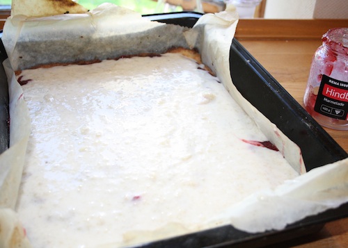 Kagen er god er rigtig god med det samme, men jeg syntes, som med hindbærsnitter, at den er bedst når den har stået en dags tid.