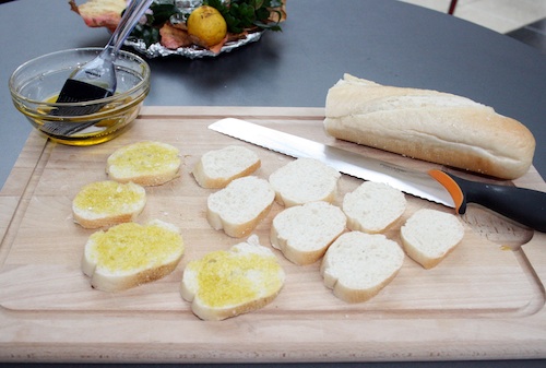 Skær flutes ud i stykker på 2 cm som på billedet. Pensl med olivenolie og drys lidt salt på. Rist i ovnen i ca. 10 minutter ved 200 grader – pas på de ikke får for meget.