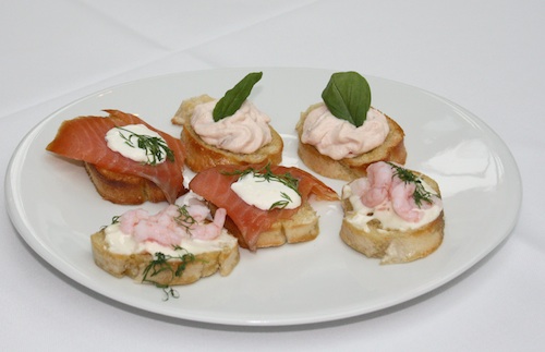 Canapeer er små stykker ristet flutes med laks eller rejer
