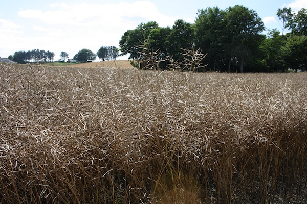 I sidste uge blev rapsen udenfor huset høstet – om et stykke tid ligger noget af den så i vores køleskab som margarine eller madolie – her er lige nogle billeder fra rapsmarkerne