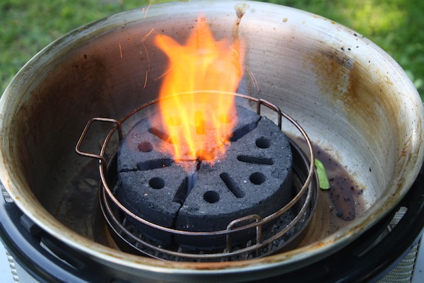 Grillen er meget let at bruge – man lægger en specialformet kul i som passer til 2 timers grill – kullene er imprægnerede med tændvæske og tændes med en lighter.