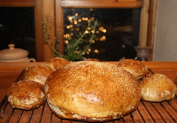 Af den første portion lavede jeg 10 boller og 1 stort rundt brød – billedet ovenfor.