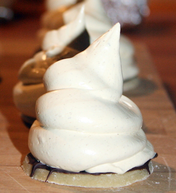 Kom fyldet i en sprøjtepose og sprøjt på bundene som på billedet.