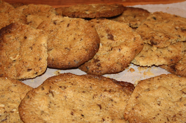 Store og meget sprøde cookies med chokolade og nødder – opskrift inspireret af opskrift fra Dansukker.